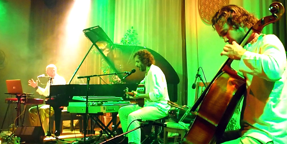 3 außergewöhnliche Klangkörper – frei von störendem Denken – transportieren pures Gefühl durch Klang, synchronisieren sich ohne Absprachen, im freien Fließen berühren sie das Unsagbare… in sich und in Dir.