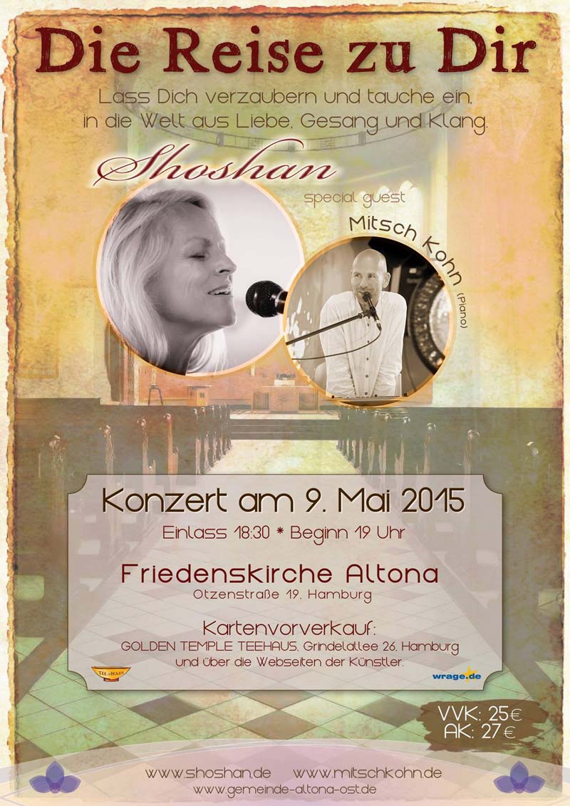Am 9. Mai findet in Hamburg ein gemeinsames Konzert mit der wunderbaren Sängerin Shoshan aus Hamburg in der dortigen Friedenskirche statt. Weitere Infos auf www.shoshan.de